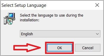 Bước 2: Chọn ngôn ngữ. Để ngôn ngữ mặc định là English rồi chọn OK