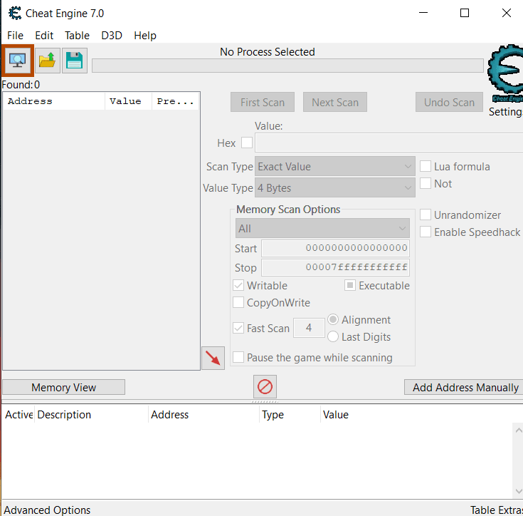 Bước 11: Giao diện phiên bản mới Cheat Engine 7.0, bạn có thể sử dụng được rồi.