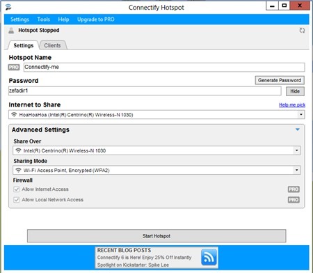 Bước 5: Khởi động lại phần mềm và trải nghiệm Connectify Hotspot 2018 Full thôi.
